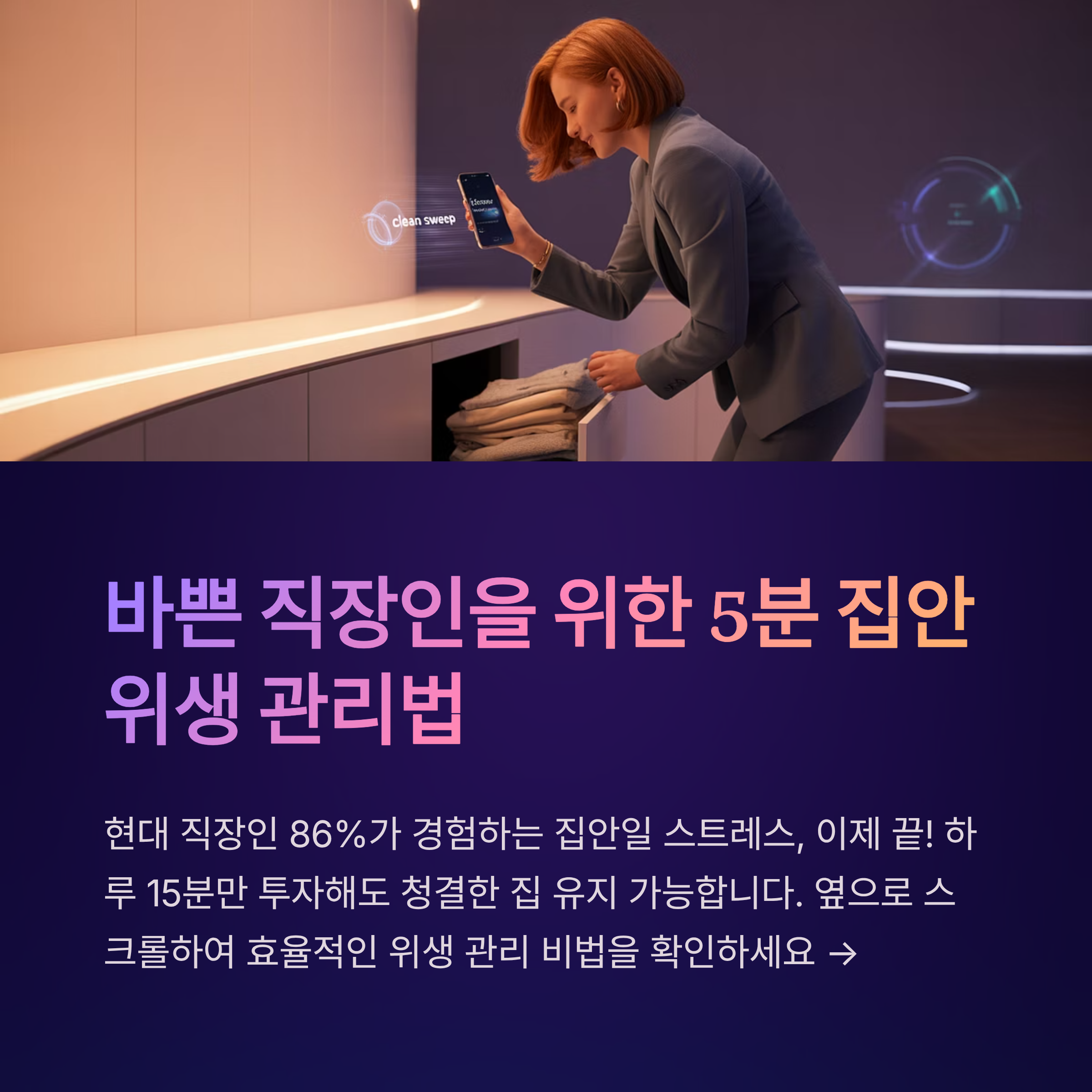 아, 오늘도 하루가 번개처럼 지나가네요! 😅 바쁜 직장인으로서 저도 집안일과 방역, 위생에 신경 쓸 여유가 부족하답니다. 여러분도 같은 상황이신가요? 그래도 걱정하지 마세요! 2025년 최신 청소 루틴과 간편법을 통해 더 효과적이고, 적은 시간 내 로 관리하는 법을 함께 알아보려고 해요. 먼지사냥꾼인 저도 처음에 어떻게 해야 할지 고민이 많았지만요. 요즘은 적은 시간에도 효율적으로 청소할 수 있는 방법들을 배우고 있답니다. 눈 깜빡일 새 지나가는 하루 속에서도 최소의 노력으로 깨끗한 집을 유지할 수 있는 팁들을 알려드릴게요! 자, 그럼 본론으로 들어가 볼까요? 🚀통계적으로 보면 2025년엔 직장인 39%가 월 1회 이상 방역 전문 서비스를 이용한다고 해요. 와, 많죠? 하지만 직접 관리할..