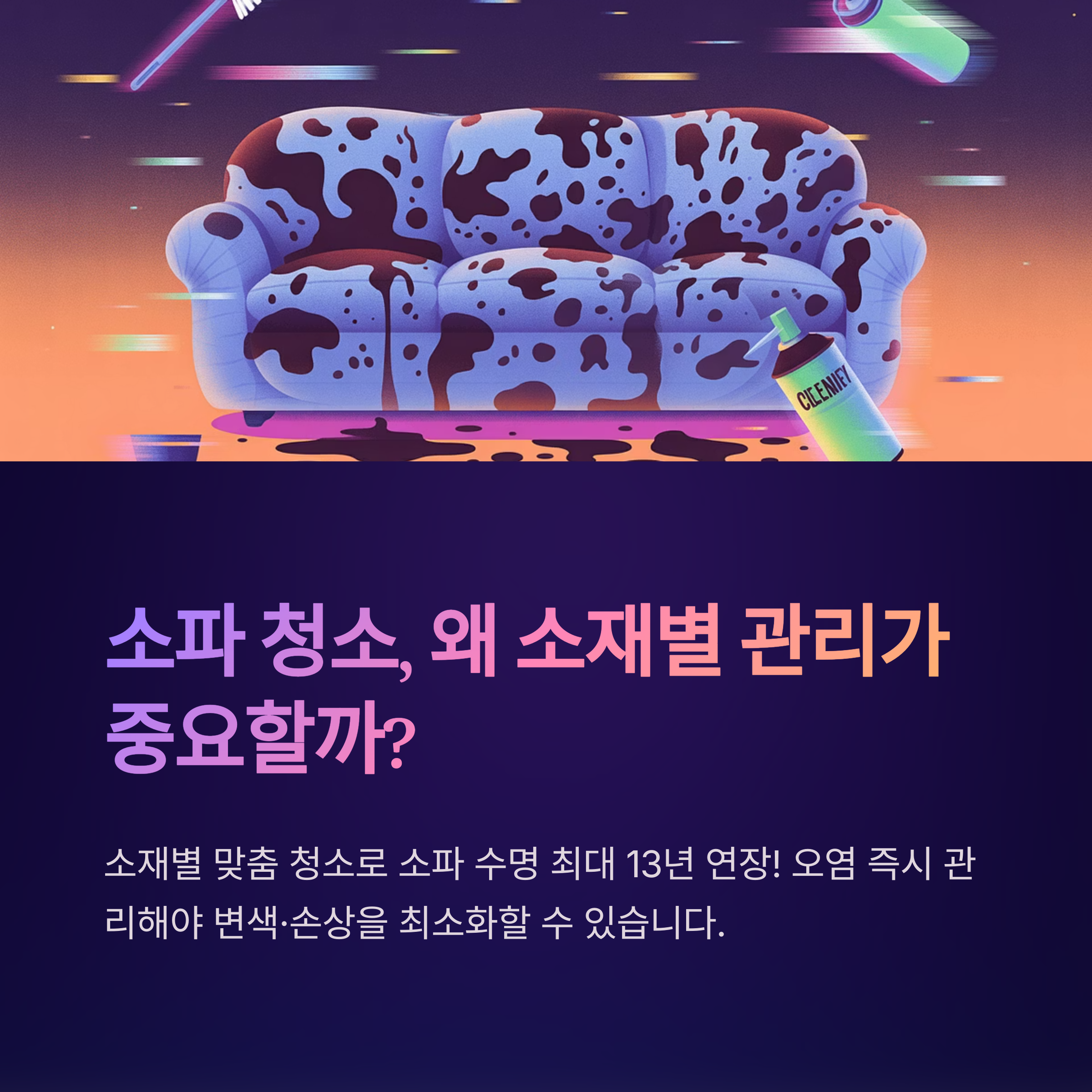 바쁜 일상 속 주기적인 관리와 청소를 통해 우리 집 분위기를 맑고 깨끗하게 유지할 수 있습니다. 언제나네와 함께 소파 관리를 더욱 효과적으로 진행할 수 있는 청소 방법과 꿀팁을 알아보세요. 정기적인 케어로 소파의 수명을 연장하고 깔끔한 인테리어를 유지하는 방법, 바로 시작합니다.목차소파 유형별 청소 기본 원칙효율적인 해법과 실질적 팁소파별 오염별 상세 대응법소파 청소시 주의사항 및 금지 항목관리 주기 및 통계 데이터요약1. 소파 유형별 청소 기본 원칙소파 청소는 소파의 소재와 상태에 따라 다르게 접근하는 것이 중요해요. 한국에서 판매되는 소파 중 약 35%는 가죽 소재이며, 이 중에서도 천연가죽 소파가 최근 많은 사랑을 받고 있죠. 가죽 소파는 주 1~2회 청소기로 먼지를 제거하고, 마른 극세사 천으로 ..
