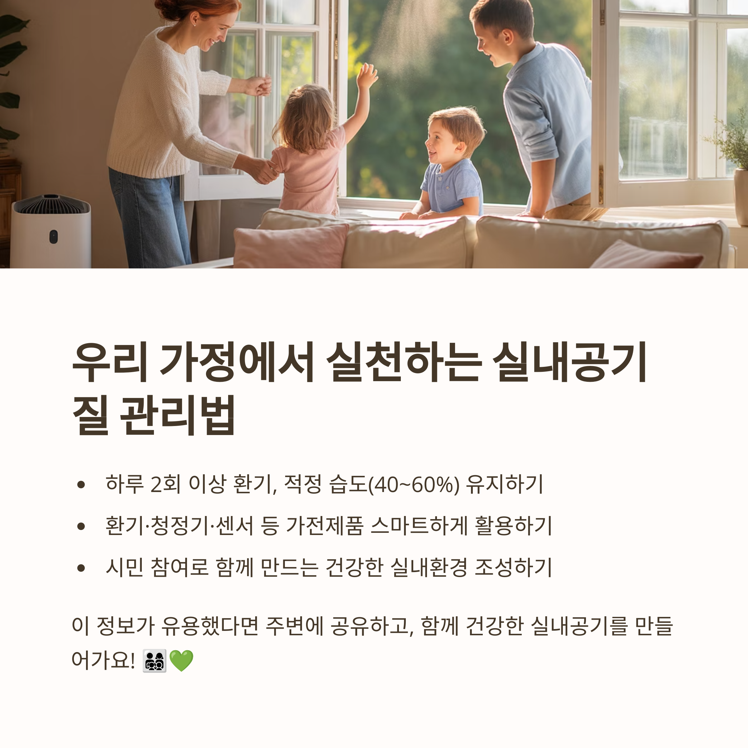 | 환기 | 짧게 환기 | 공기질 유지 |