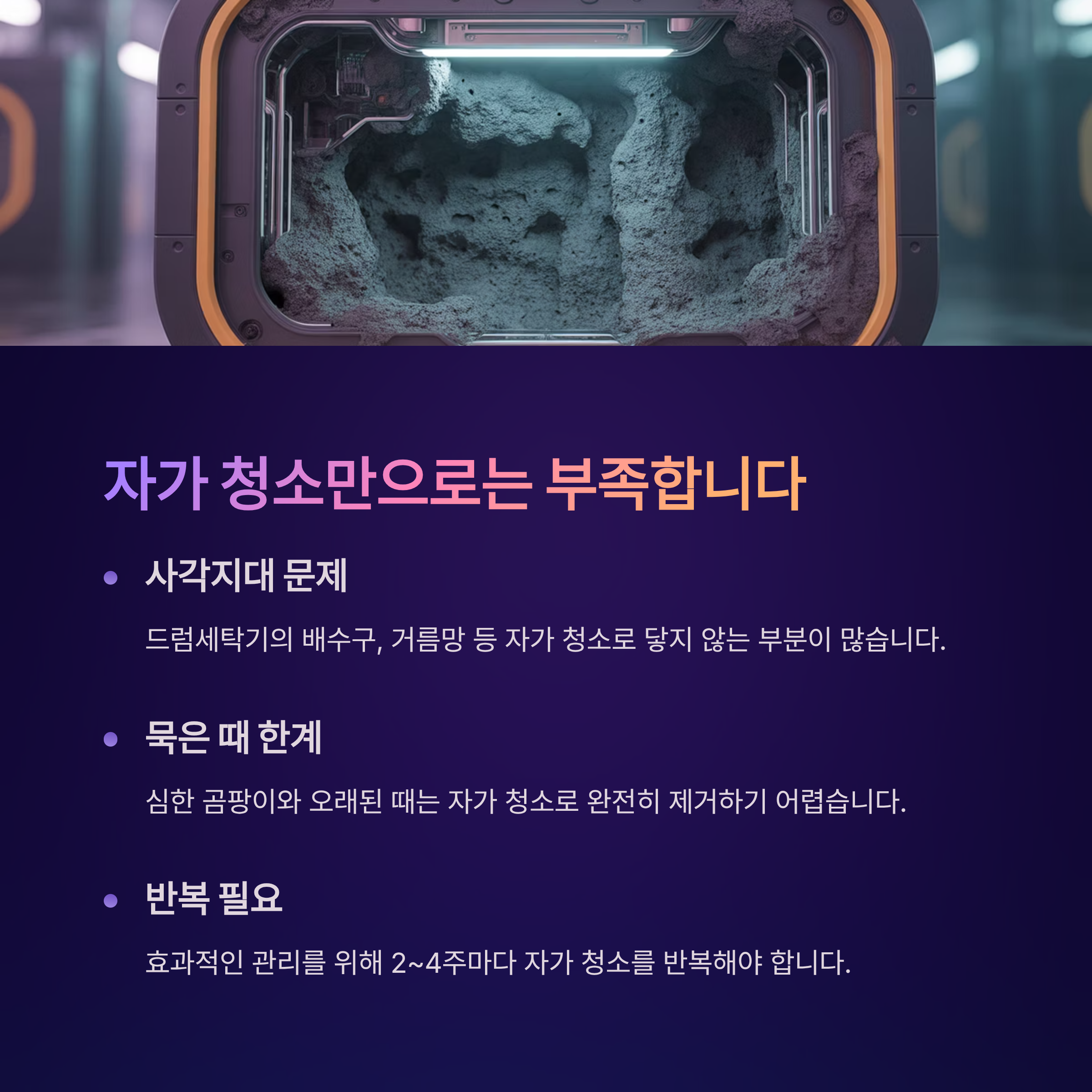 세탁조 청소를 안 하면 어떤 문제가 생길 수 있나요?