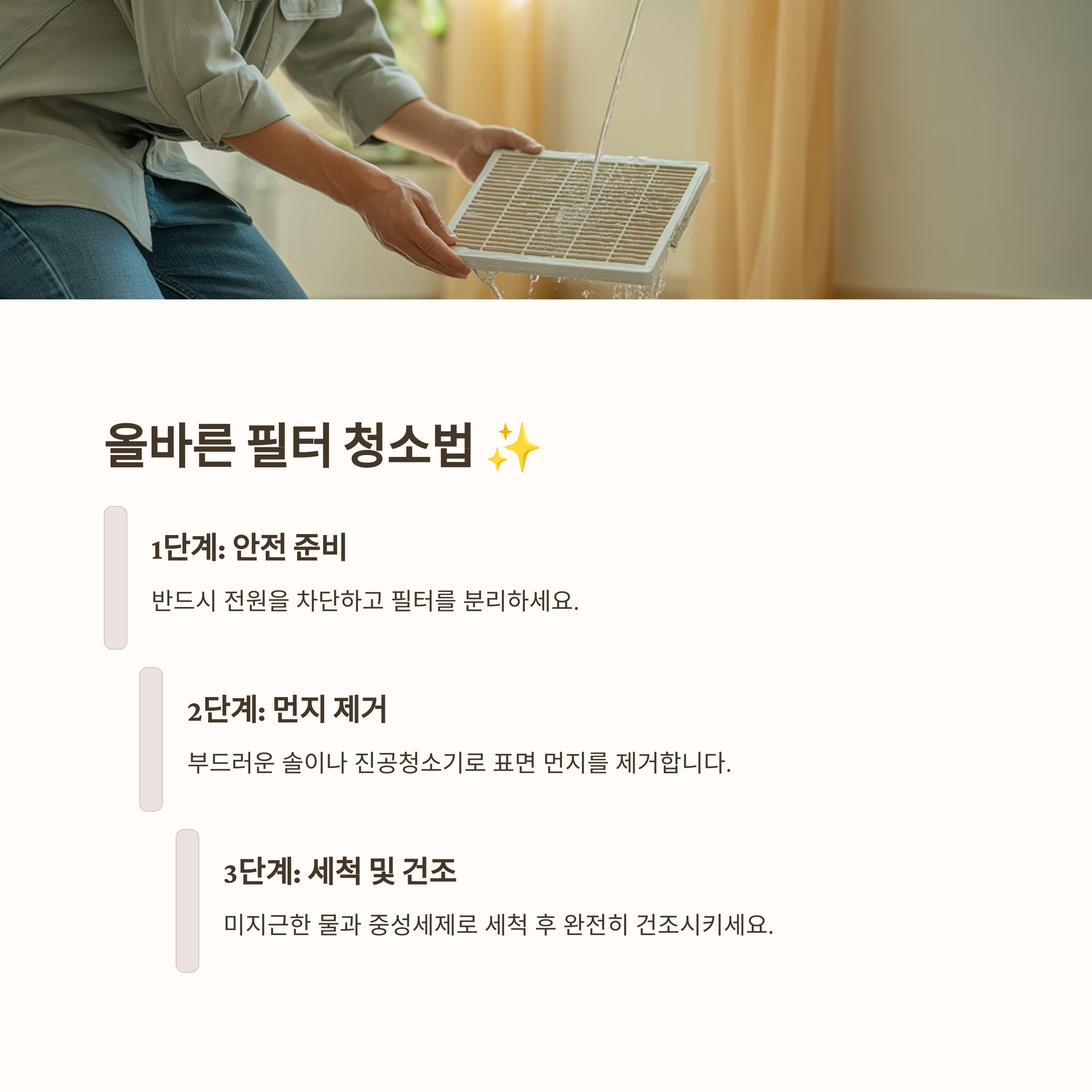 - 필터 청소 시 주의해야 할 점은 무엇인가요?