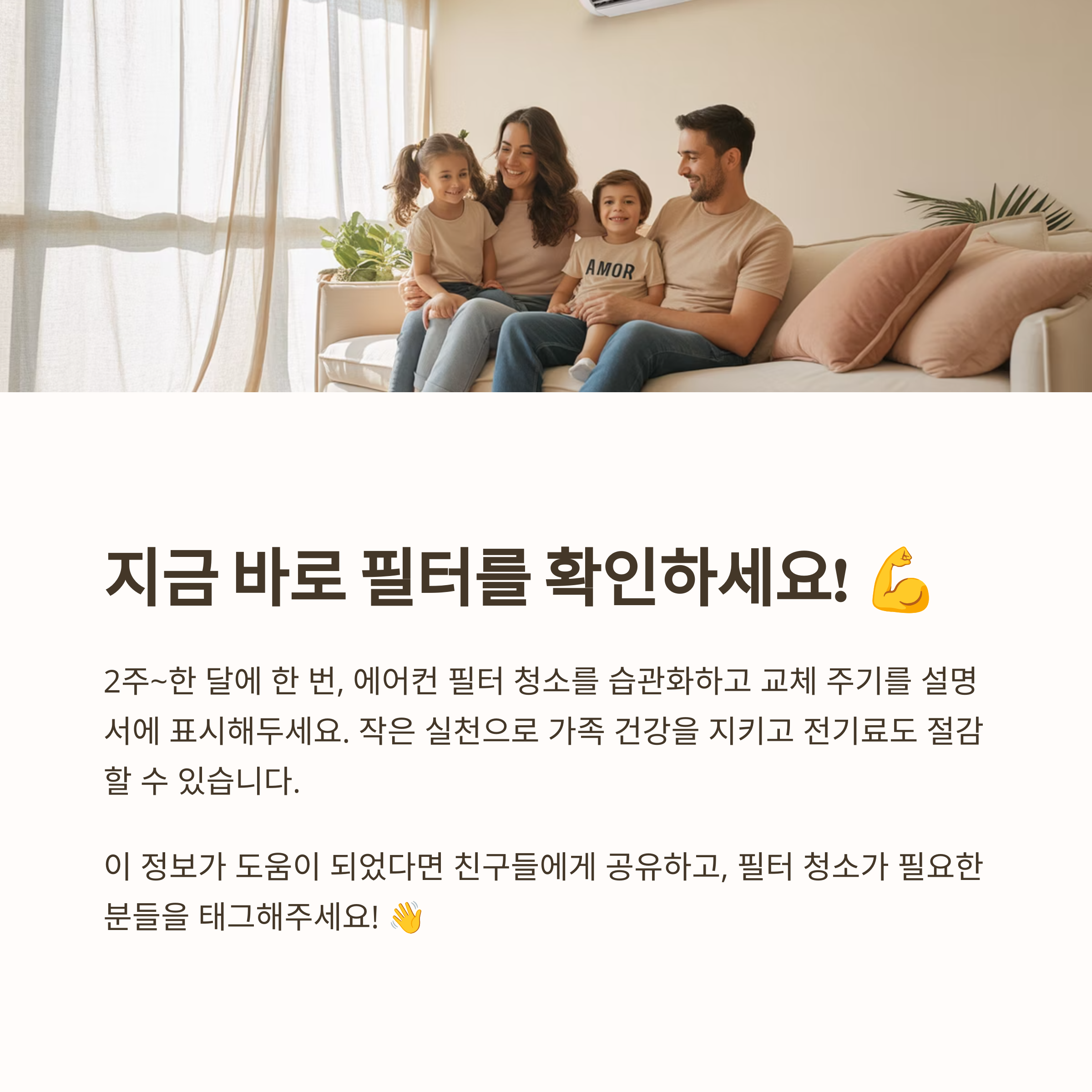 | 삼성 무풍에어컨 | 극세필터, 공기청정필터 | 극세필터: 2주, 기타: 3개월 | 극세필터 2주, 나머지 3개월 |