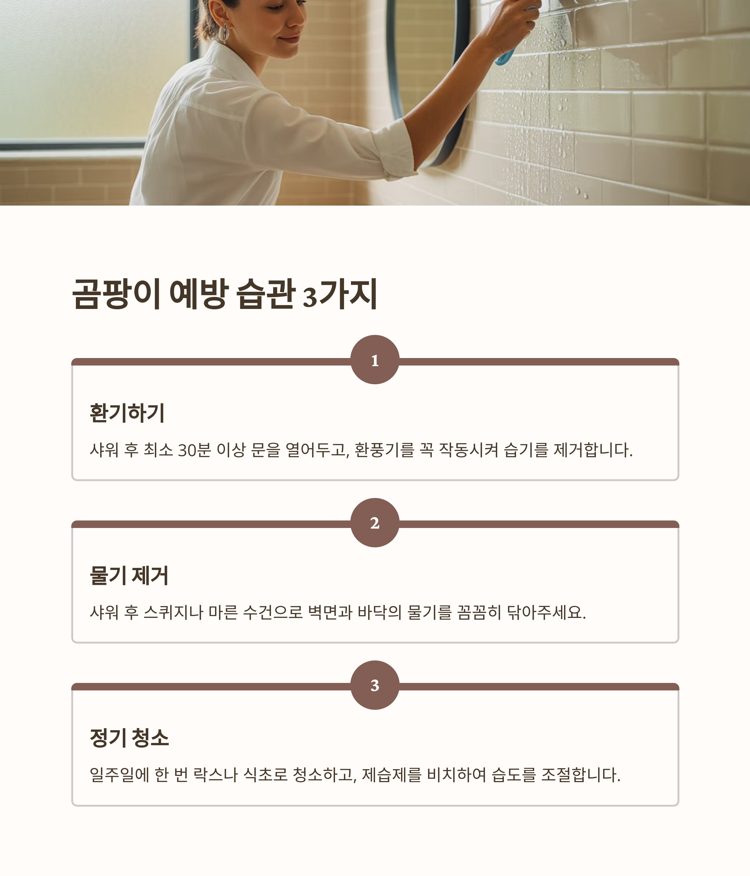 - 샤워 후 환기를 통해 욕실 습기 제거