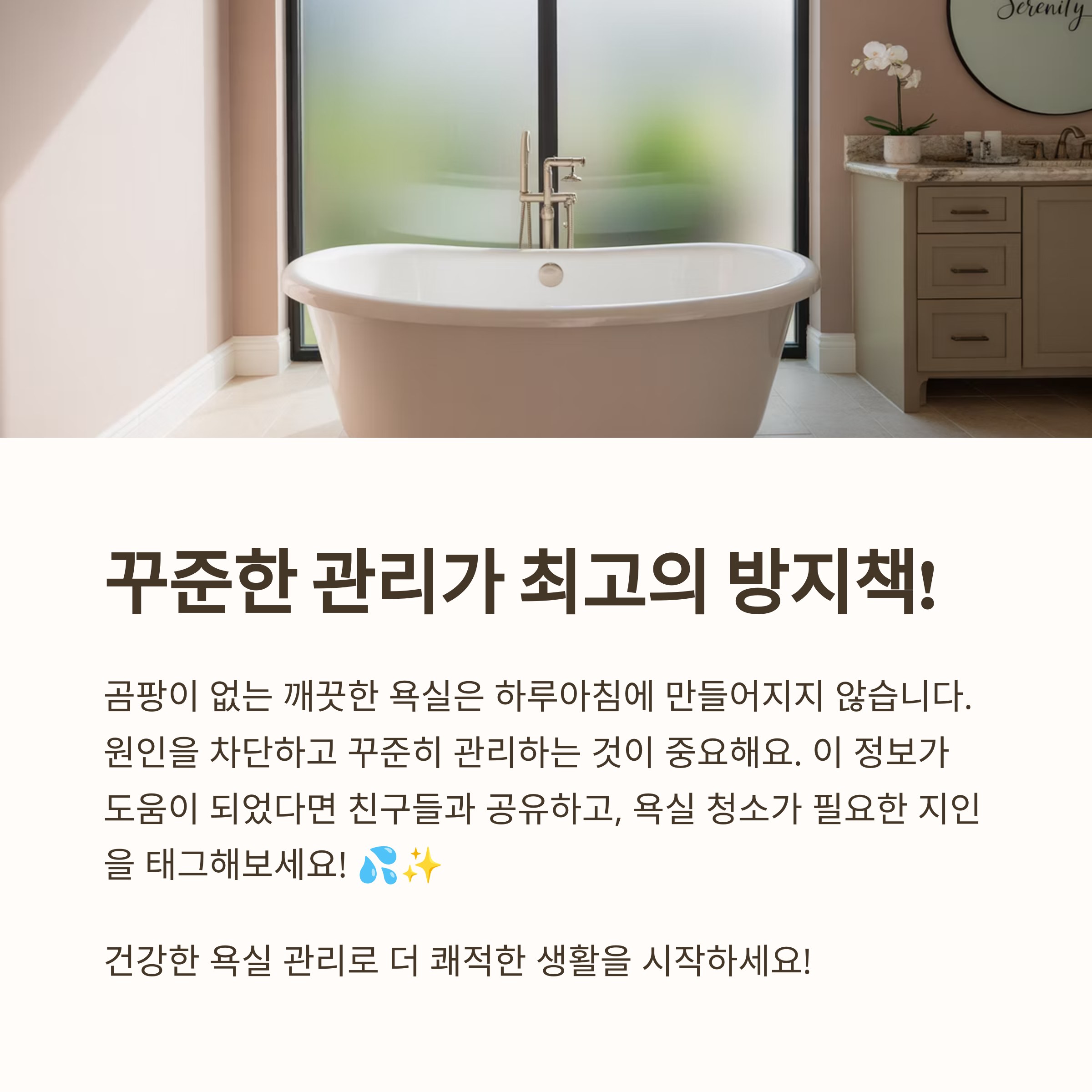 안녕하세요, 여러분! 오늘은 우리의 가장 아끼는 공간 중 하나인 욕실의 청결을 유지하는 방법을 소개해드리고자 합니다. 욕실은 일상생활에서 자주 사용하는 장소인 만큼 그만큼 깨끗하게 유지되는 것이 중요합니다. 하지만 언제나네님께서 소개해 주신 것처럼, 곰팡이는 종종 우리의 방심을 노리고 기습적으로 나타나곤 하죠. 그래서 오늘은 곰팡이를 효과적으로 제거하고, 앞으로의 재발을 방지할 수 있는 방법들을 자세히 알아보겠습니다. 함께 청결하고 상쾌한 욕실을 만들어 봅시다!