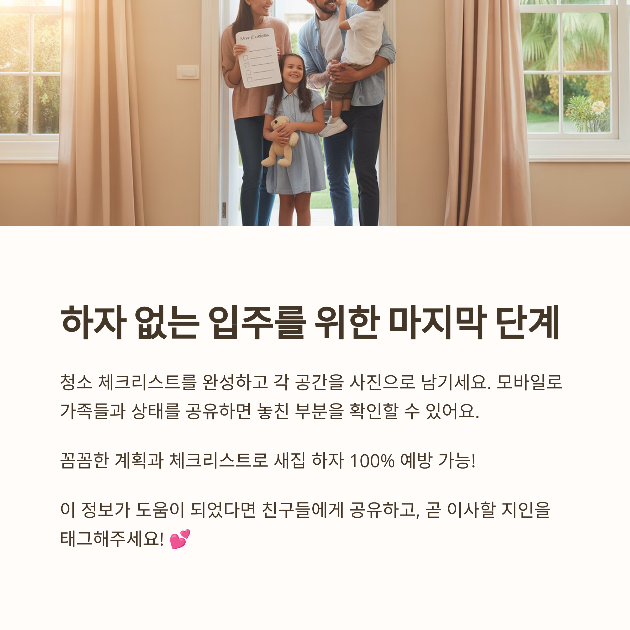 여러분의 입주 청소 경험을 댓글로 공유해 주세요! 항상 건강하고 쾌적한 생활을 응원합니다.