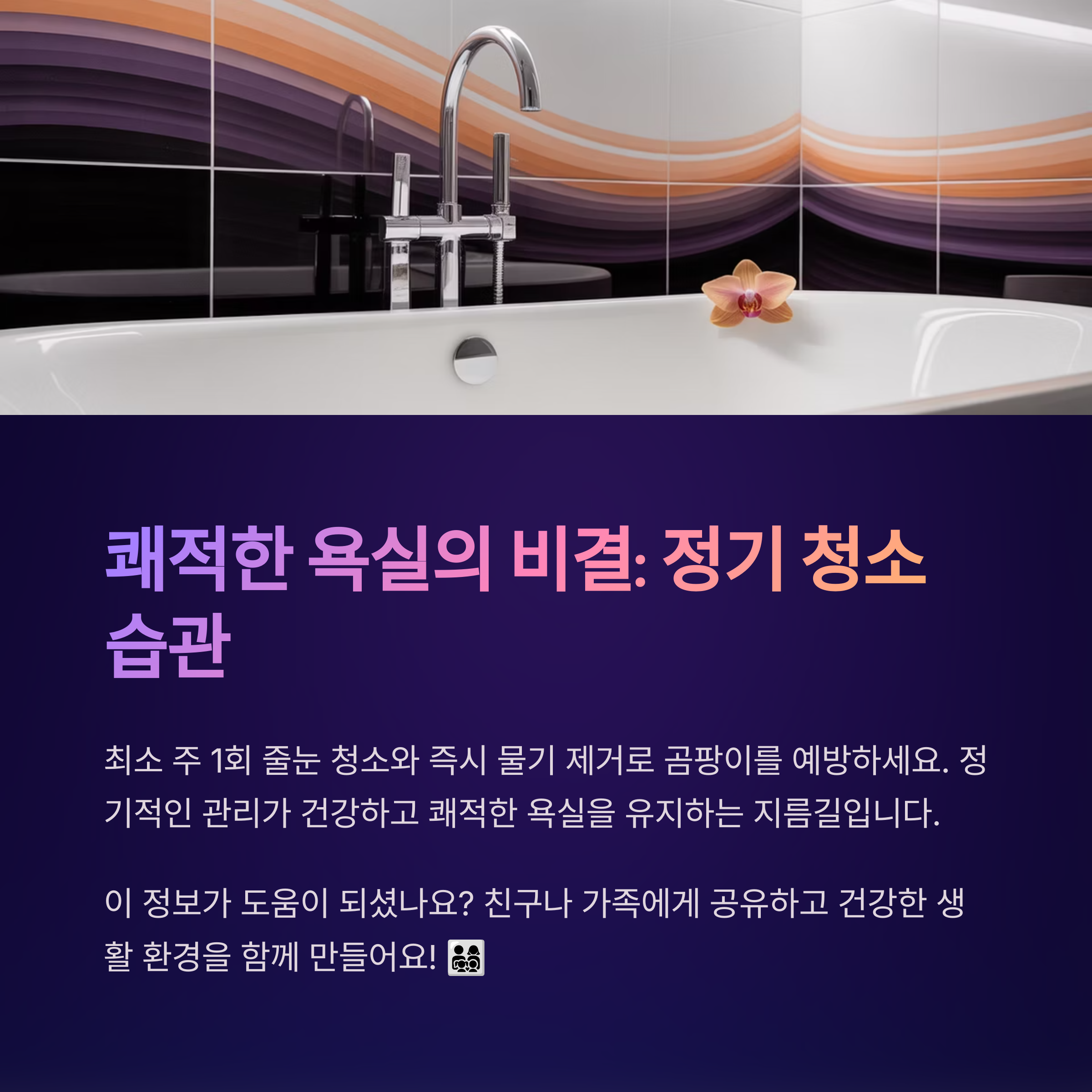 욕실 줄눈의 청결을 유지하는 것은 건강하고 쾌적한 환경을 만드는 데 필수적입니다. 국내에서는 평균적으로 3~6개월 간격으로 청소가 권장되지만, 현실에서는 많은 가정에서 1년에 1~2회만 청소한다고 해요. 그 결과로 곰팡이 발생률이 60%를 초과하고 있다는 사실, 놀랍지 않나요? 😲 주요 오염 원인으로는 높은 습도, 부족한 환기, 그리고 비위생적인 물찌꺼기 등이 있는데, 이는 모두 곰팡이와 세균이 번식하기 쉬운 환경을 조성해 줍니다. 그러니 정기적으로 청소를 하는 것이 정말 중요하네요!