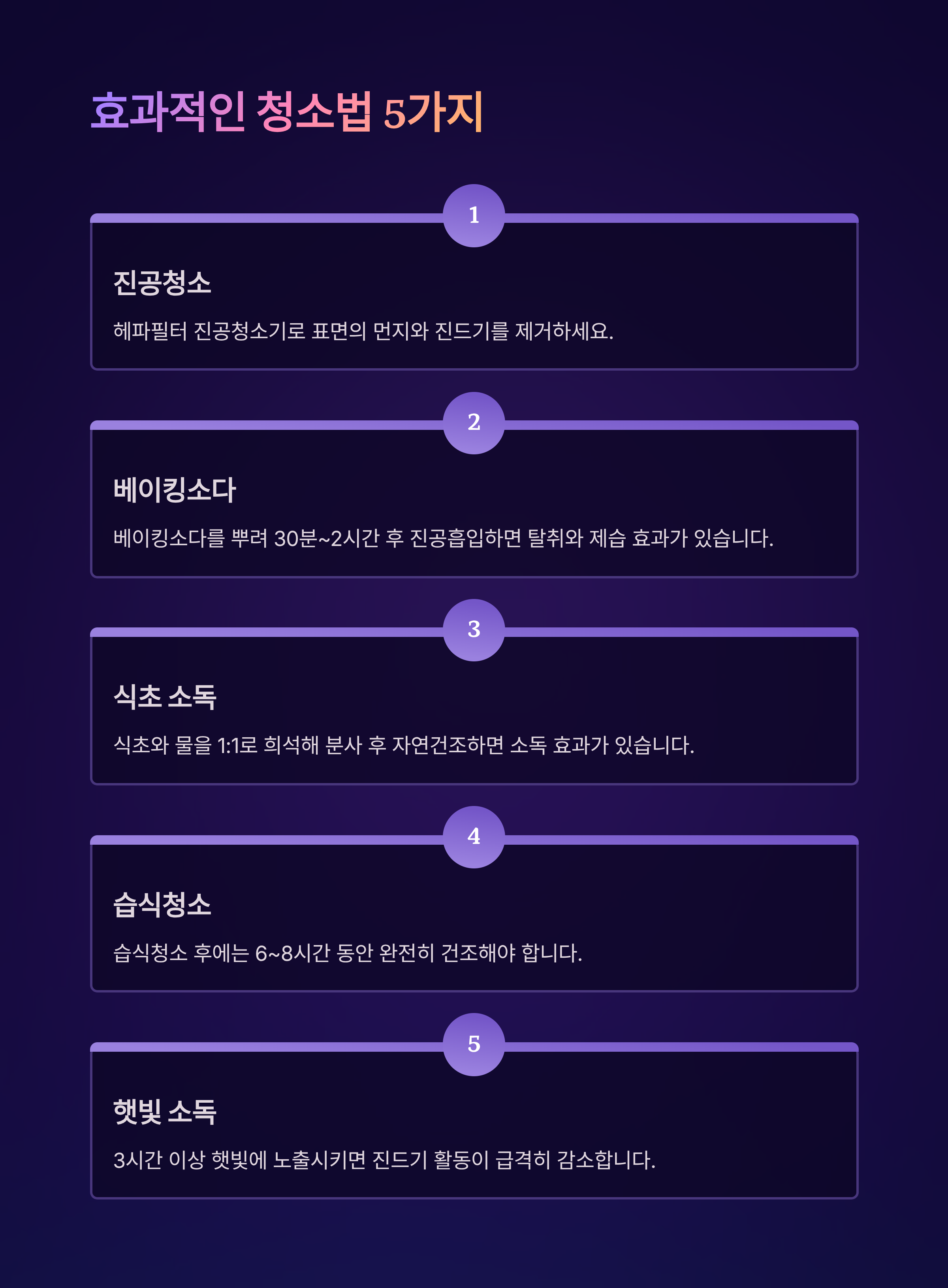 - 청소기를 이용하여 매주 먼지와 진드기 제거하기