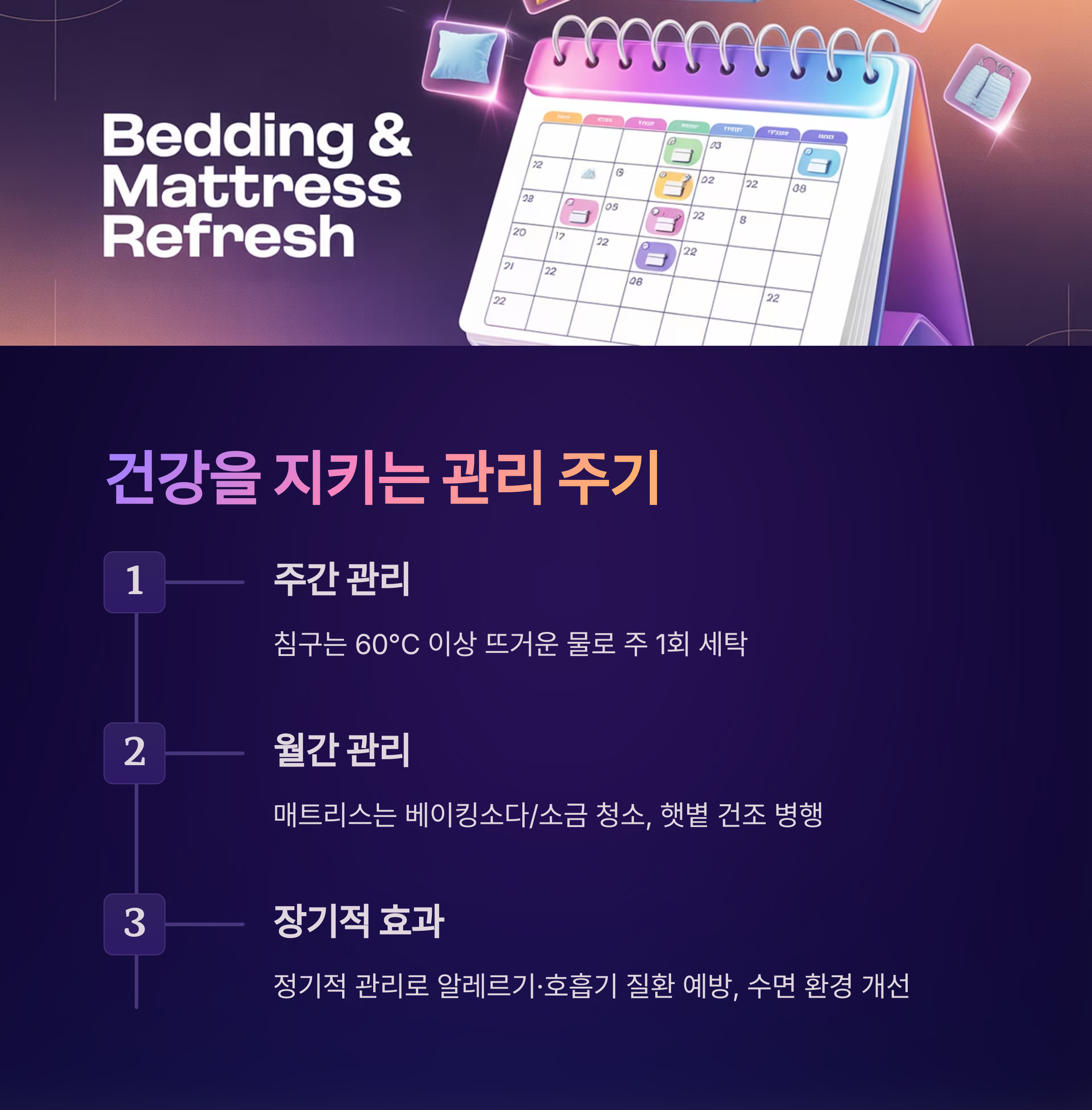 - 침구류는 1~2주에 한 번 고온 세탁